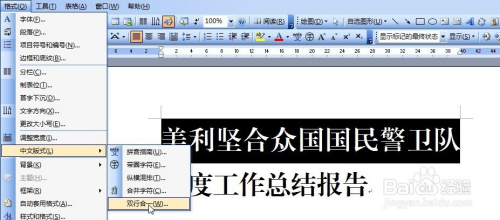 在一行中键入完整的文字→在同业文字中选择需要呈现出两行并做一行显示的文字。