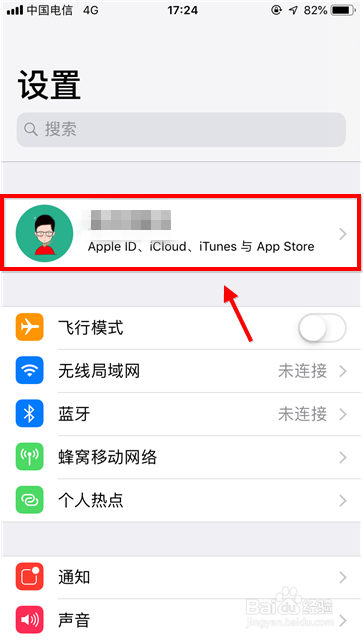 进入后第一项为Apple ID,这个每个人都分歧,进入后点击“查看Apple ID”。