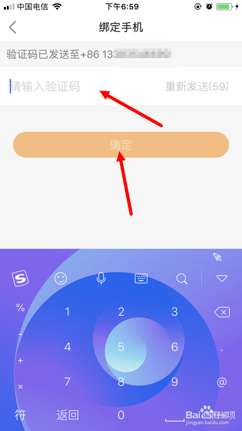 此时需要验证手机号码,就是将收到的短信验证码输入,并点击 确定 。