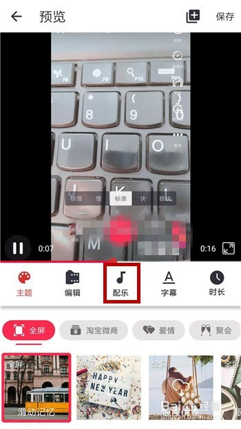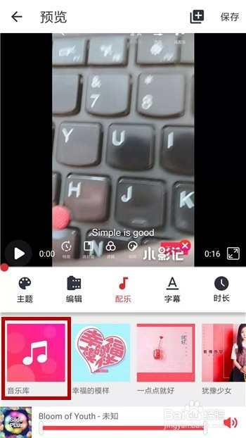 点击利用音乐后会加载音乐,这样就给视频配上音乐了。