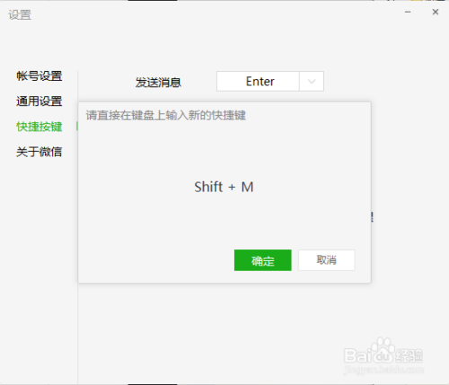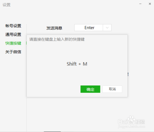 提醒在键盘上输入新的快捷键,假设我们要设置为Shift键+M键,则在键盘上按下该组合键即可;