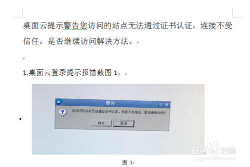桌面云提醒警告您拜候的站点无法经由过程证书认证,毗连不受信赖。是否继续拜候解决方式。