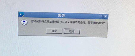 将当前桌面云提醒警告您拜候的站点无法经由过程证书认证,毗连不受信赖。是否继续拜候窗口,点击确定。
