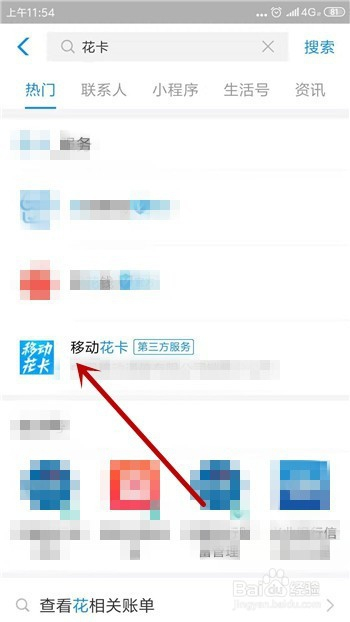 搜刮【花卡】,然后点击【移动花卡】,如图所示。