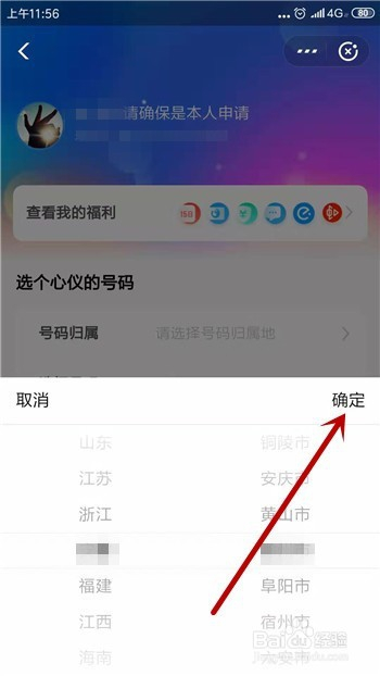 打点的时辰首先需要选择号码归属地,选好后点击【确定】。