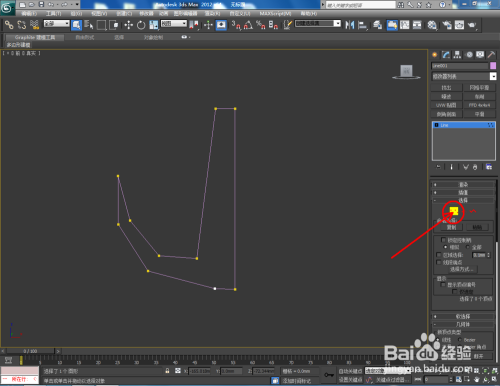 打开3Dmax2012软件,点击【建立】-【图形】-【线】,按图示在作图区域绘制一个自界说图案。选中图案上的点进行圆化处置(如图所示);