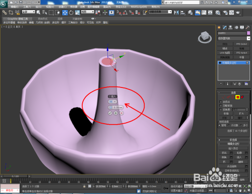 选中模子,点击右边工作区中的【面】图标,按图示选中模子的顶面后,点击鼠标右键-【插入】,按图示设置好插入的各个参数。完当作后点击鼠标右键-【挤出】,并设置好挤出的各个参数(如图所示);