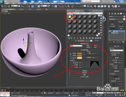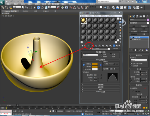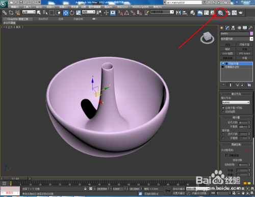 选中模子,点击【网格光滑】,按图示设置好网格光滑的各个参数,完当作模子的光滑优化处置。点击【材质编纂器】,设置一个金属材质球并附加给模子,完当作模子的所有建造后,点击【衬着】将模子衬着出图即可。