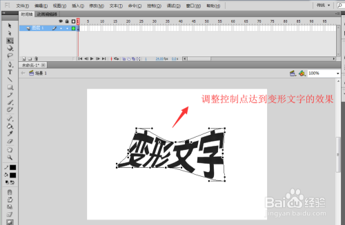 依次选中单个节制点进行文字外形的调整,将文字调整为我们想要得一个变形文字的外形。获得变形文字。