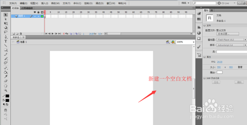 打开并启动flash二维动画软件,选择文件中的新建号令,来建立一个新的flash文档。