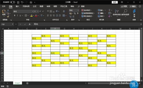 最后我们点击弹窗中的“全数替代”按钮,这样黄色单位格内都输入了不异内容“阳光”。如图所示: