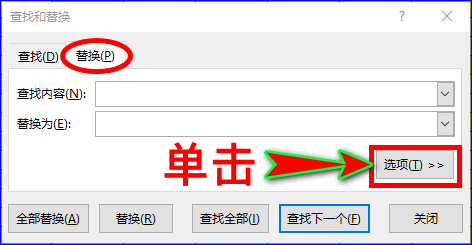 在“查找和替代”弹窗的“替代”界面中我们点击“选项”按钮,这时会呈现具体的扩展项。如图所示: