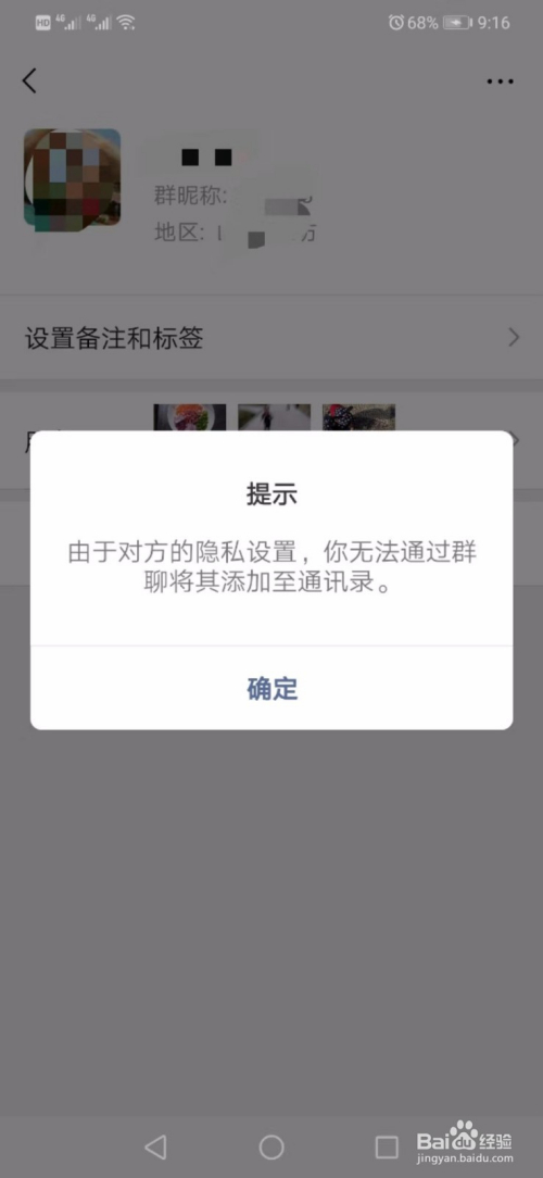 当别人再从群聊里添加我们时,就会提醒因为对方的隐私设置,你无法经由过程群聊将其添加至通信录。