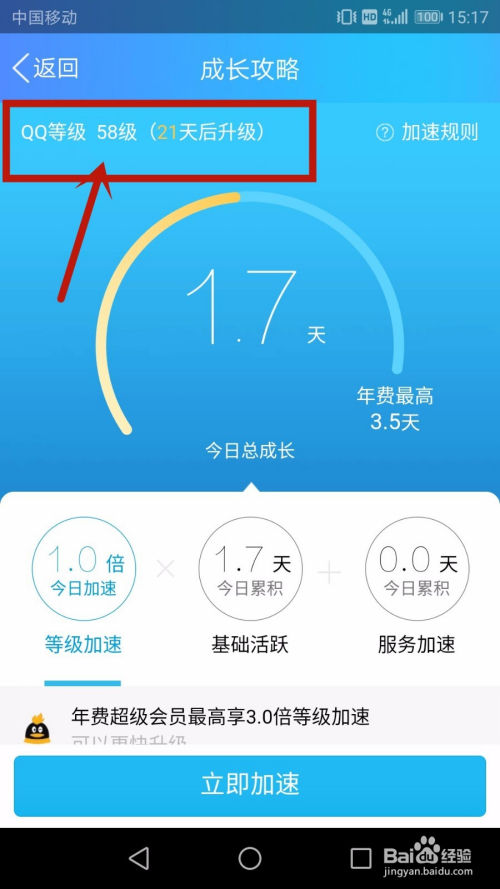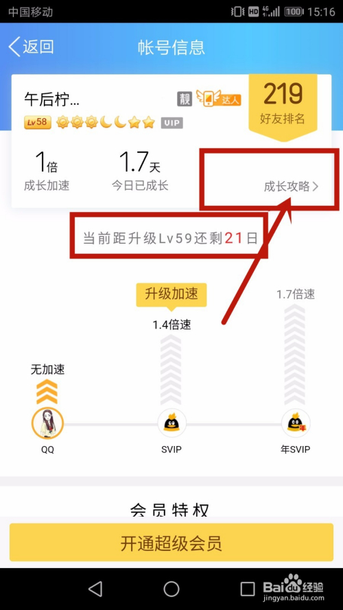 即进入“帐号信息”界面,如图点击右边的“当作长攻略”进入,在当前界面也可以看到“当前距进级XX级还剩X日”,据此可以知道本身的品级。