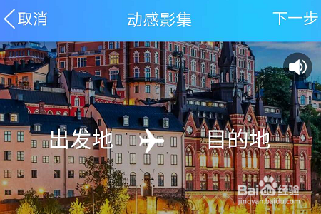 选择好模板然后就是去手机图库中勾选照片了,下图就是旅游模板的首界面,系统会按照上传图片的先后挨次以动感的视频形式揭示,建造完当作今后点击“下一步”还可以将影集发布到空间;