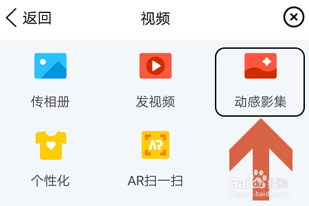 点击相册今后,在跳转到的相册页面最下方我们可以看到“视频”这一项,点击视频今后在新的页面右上角有一个“+”符号,点击就能看到“动感影集”功能了;