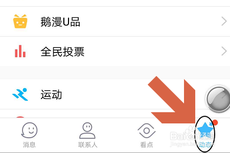 打开2019版最新手机QQ软件今后,我们首先需要点击页面右下角的“动态”,如下图所示...