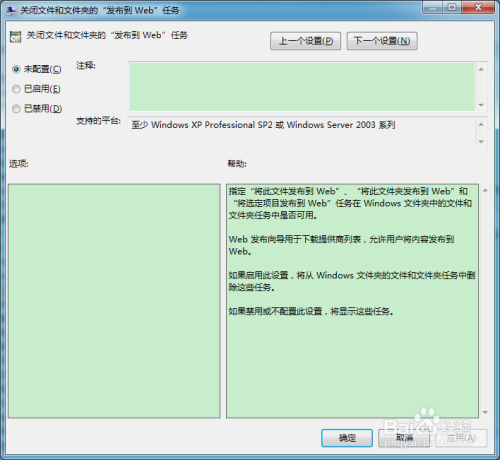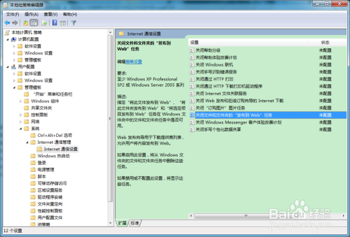 经由过程在组策略禁用,封闭文件和文件夹发布到web使命的设置装备摆设项。可以禁用“将使命发布到web”、“将此文件夹发布到web”、“将选定项目发布到 Web”的使命。
