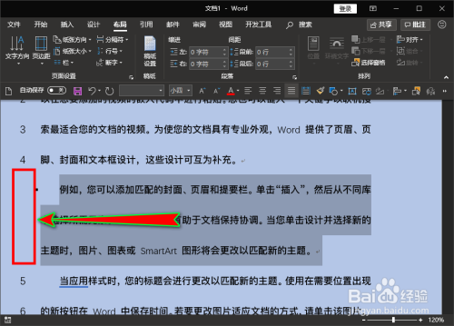 我们仍是运用上面的方式给整个文档添加行号,然后选中不需要添加行号的段落。如图所示: