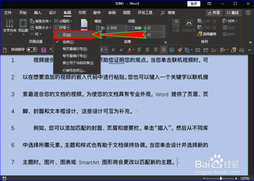 若是想打消行号,我们只需在“行号”选项的扩展项中单击“无”即可。如图所示: