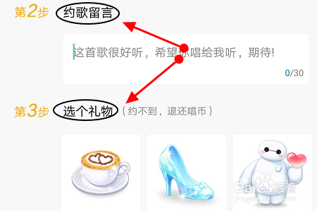 选好今后还可以给对方留言,不外必需给对方送个礼品今后,才可以当作功约歌,这些礼品都是需要必然的唱币才可采办;