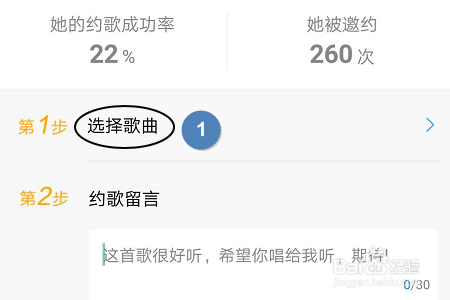 点击约歌今后,我们首先需要选择一首歌曲,既可以选择系统中的歌曲,也可以直接搜刮本身想要听的肆意一首歌曲;