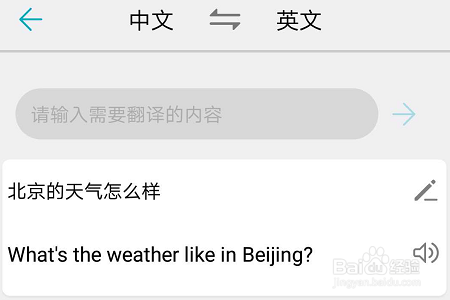 此外它还有一个比力厉害的功能,那就是翻译了,点击话筒右侧的图标就会跳转到翻译页面,不外今朝仅撑持中英文的互译,不单可以翻译并且还会读出来,如图所示...