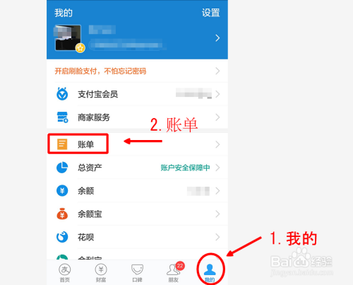 打开支付宝,在支付宝首页点击我的,找到账单并点击进入本身的出入账单中。
