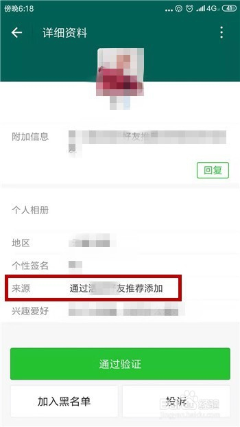 打开老友的具体信息后可在【来历】里看到添加的体例。