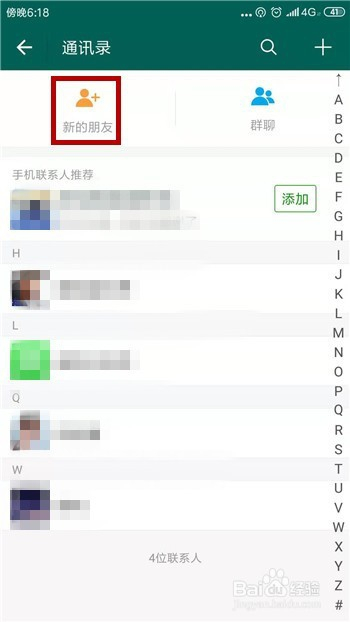 或者新添加我们的人可在通信录里点击【新的伴侣】。