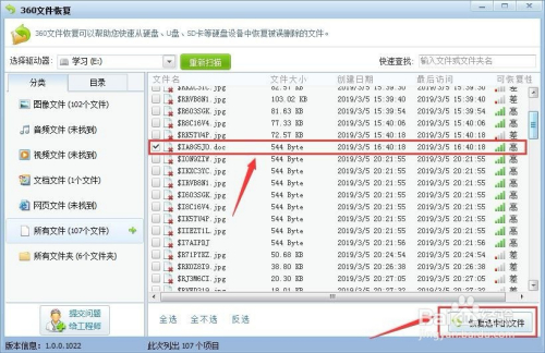 扫描完当作后就会呈现良多之前删除了的文件,此中显示“恢复性高”的文件最轻易被恢复。例如这里要恢复“$IA8G5J0.doc”,首先勾选该项,然后点击【恢复选中的文件】。
