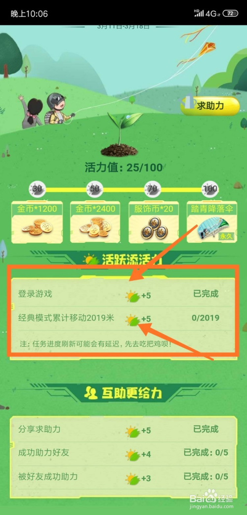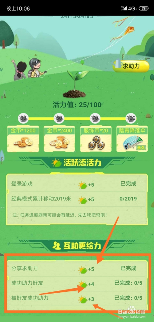 最后我们天天的分享乞助力可以获得5点活力值,而当作功助力老友可以获得4点活力值,天天可以完当作5次。为老友当作功助力之后,可以获得3点活力值,天天可以完当作5次。完当作每日的活力值使命之后,我们点击领取即可。