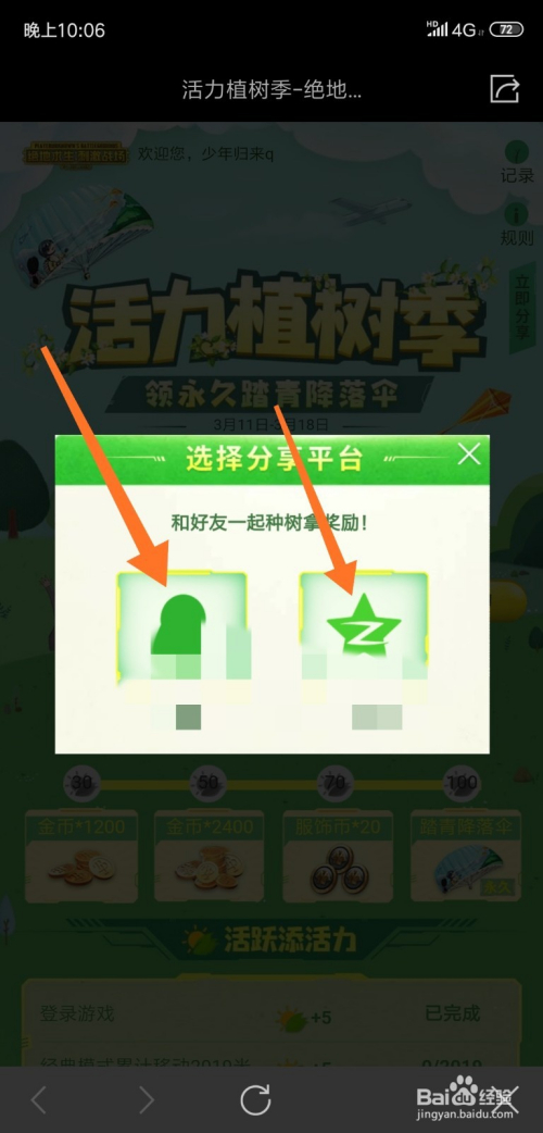 当我们凑齐100活力值之后,就可以领取踏青下降伞了,我们回到活动页面,点击当即领取即可,如下图所示。