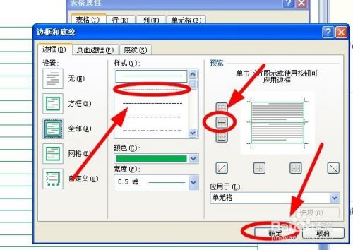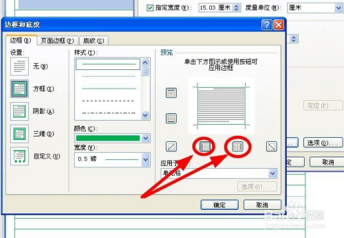 在“边框和底纹”对话框的预览窗口,别离单击这里,打消边框,单击“确定”