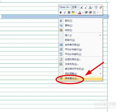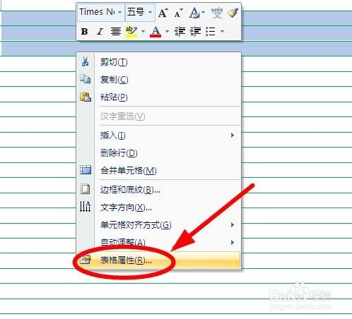 选中前三行表格,利用鼠标右键,单击“表格属性”