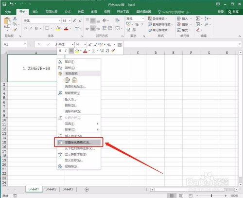 右键单击A1单位格,在弹出的菜单中,选择“设置单位格格局”号令。