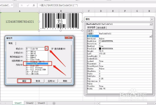 右键单击设计模式的条形码,在弹出的列表中,单击“属性”号令。主动弹出“属性”设置界面。