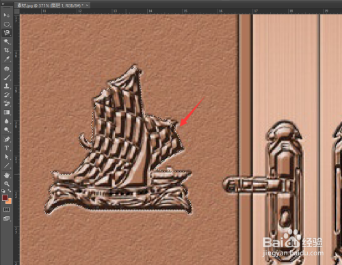 复制完布景图片之后,我们首先利用磁性套索东西,将铜门上的一些浮雕可以勾选出来,如下图所示。