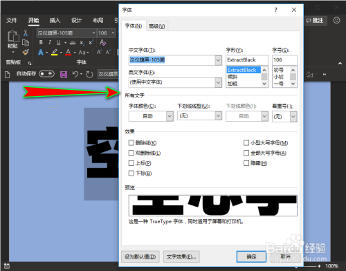 接着我们选中内容,单击本家儿菜单“起头”,在其子项中找到“字体”组并单击其右侧的下三角符号,这时会呈现字体设置弹窗。如图所示: