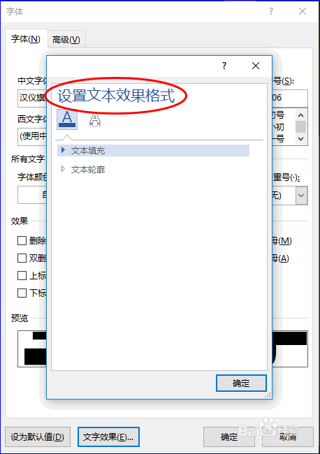 然后在字体设置弹窗的“字体”界面中,我们单击“文字结果”选项,这时会呈现“设置文本结果格局”弹窗。如图所示:
