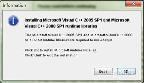 提醒安装C++2005和2008,点击OK,按照提醒安装
