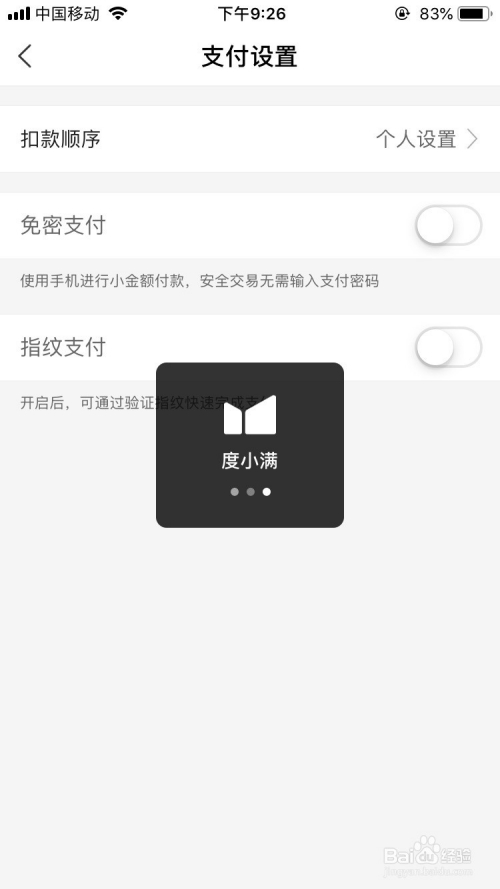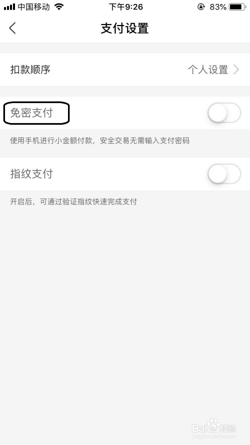 在支付设置的界面下点击看到免密支付并没有开启的状况。