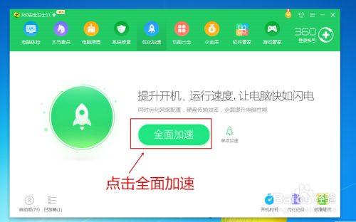 电脑工作时候长了,天然会变慢,不只是因为装的工具多了,还有经常上网会有收集带来的风险,导致电脑程序运行变慢和开机变慢。如何才能优化加快呢?我们可以操纵360安全卫士进行加快优化。