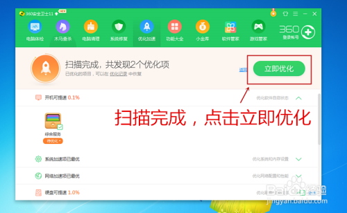 扫描完当作,在弹出的新页面点击“当即优化”。