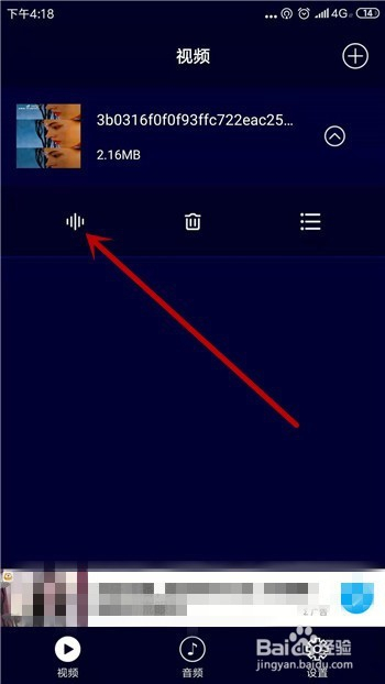 添加完视频后点击视频下方的【音频】按键,如图所示。