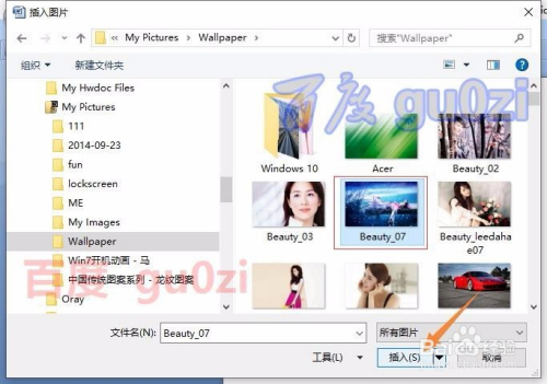在弹出的 插入图片对话框界面中,找到一个图片存放的路径,并选摘要插入的图片,