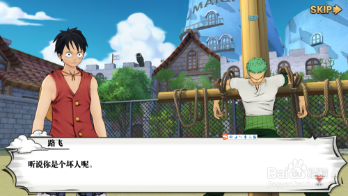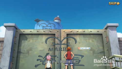 此时看到声势人物,游戏中有大量的过渡,不想看点击skip。