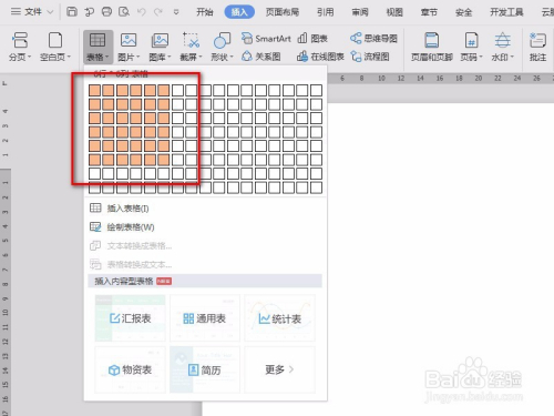 打开一个word文档,新建表格,如图新建一个6行6列的表格。