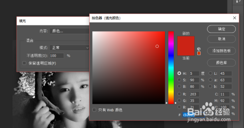 我们为新建的图层填充一个颜色,本家儿如果红色,颜色的色值见下图。
