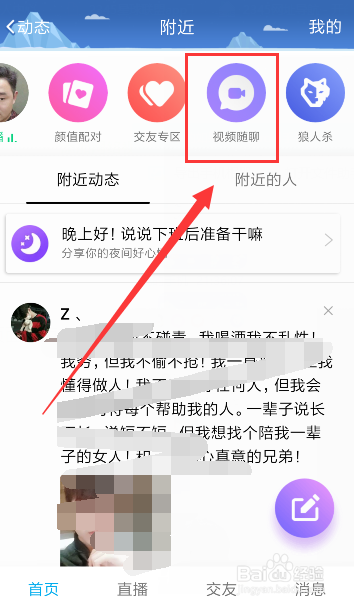 点击下面视频的随聊,起头寻找与你视频聊天的对象,如图所示
